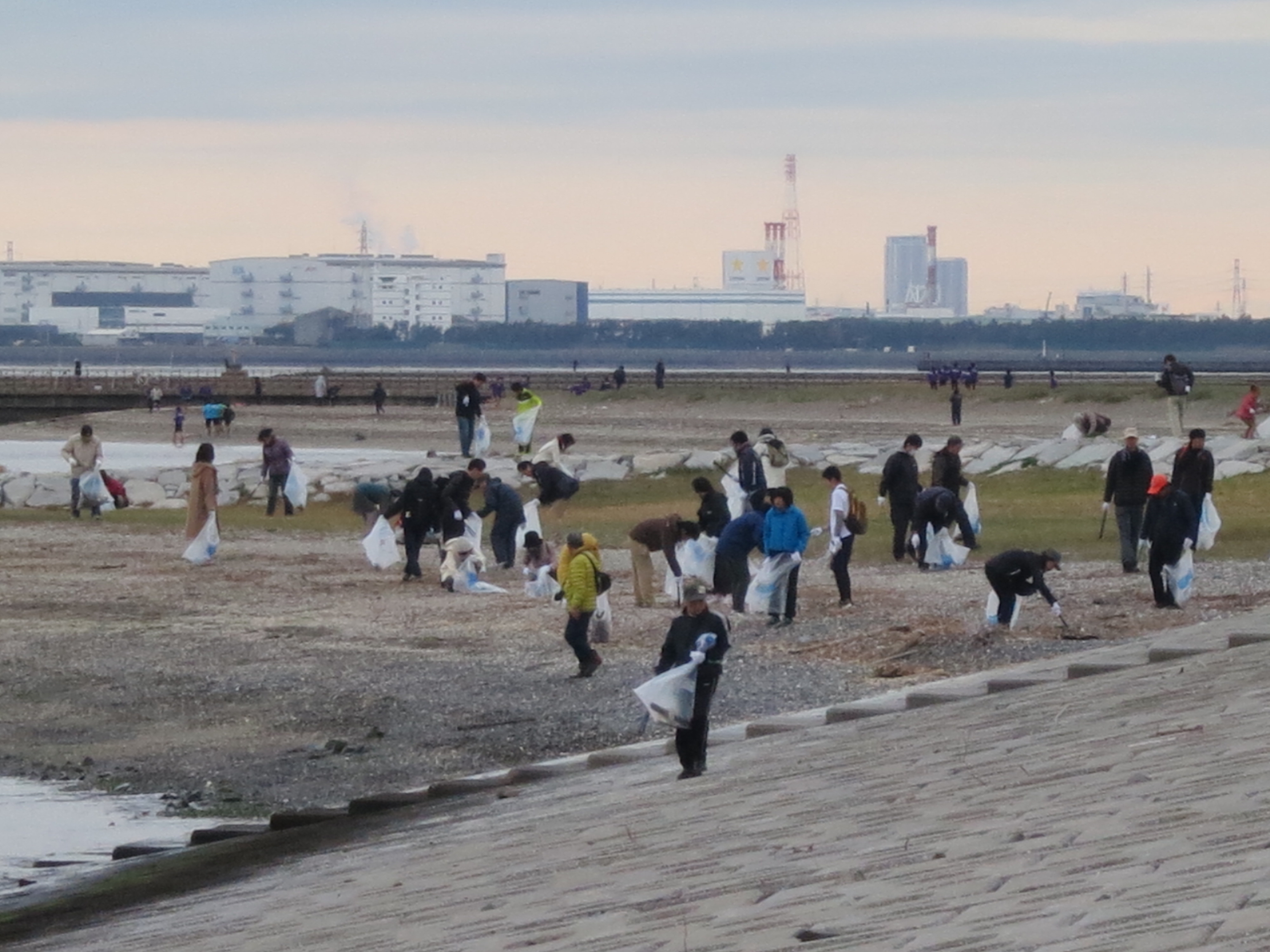 「検見川の浜」中央突堤付近 午前8時30分集合 ※清掃作業は1時間半程度の予定です。