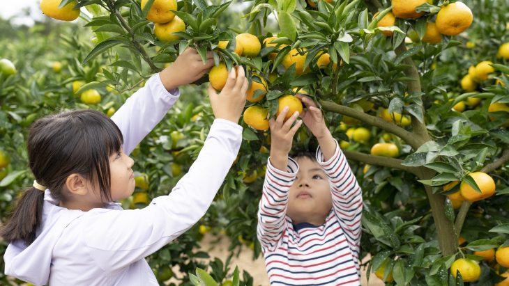 好きな樹から自由に取って食べられるみかん狩りは、楽しさがいっぱいです。