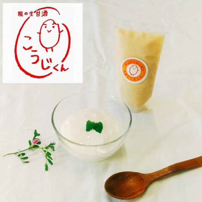 当店では酵素もたっぷり含まれている米発酵元気飲料糀の”生”甘酒【こうじくん】を、製造後、出来立てを急速冷凍し酵素の働きを冬眠させて販売しています。