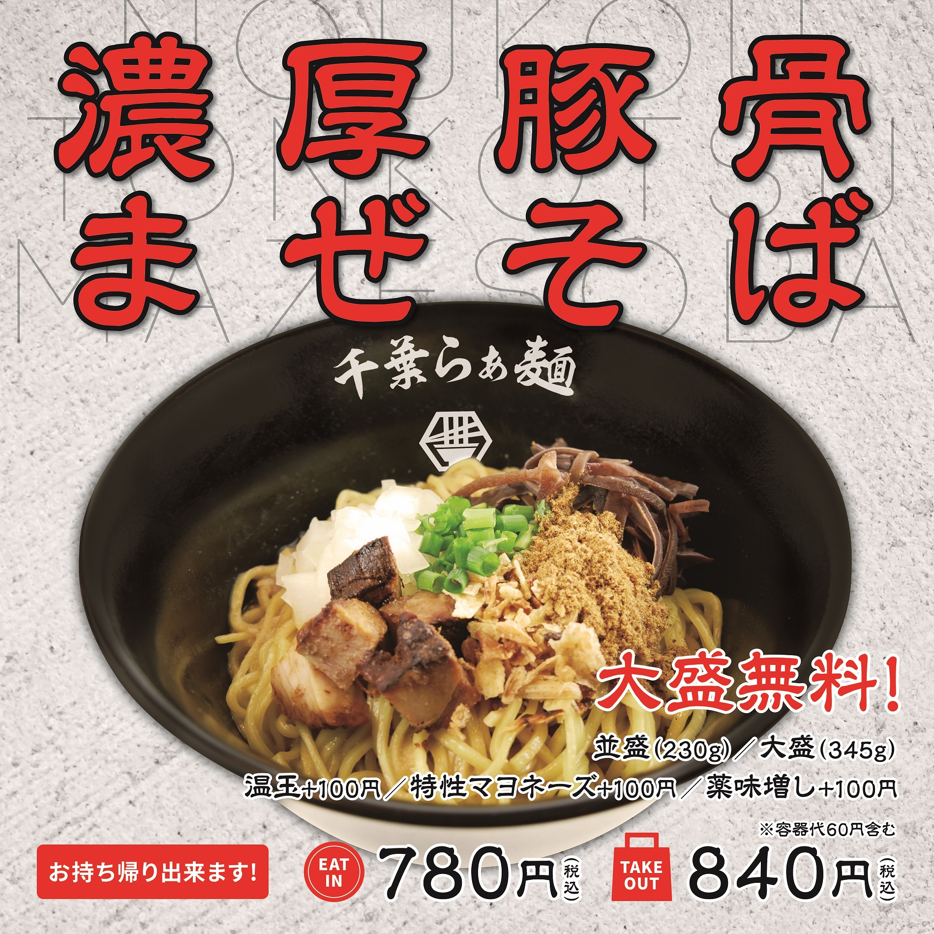 絶妙なバランスの『濃厚豚骨まぜそば』が新登場。