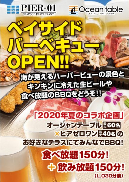 「9月30日(水)までテラスでベイサイドBBQを実施しております。お一人様あたり通常5,500円(税別)のところ、4,500円(税別)にて150分食べ放題・飲み放題をご提供しております。ご予約にてお昼からBBQは承っています。