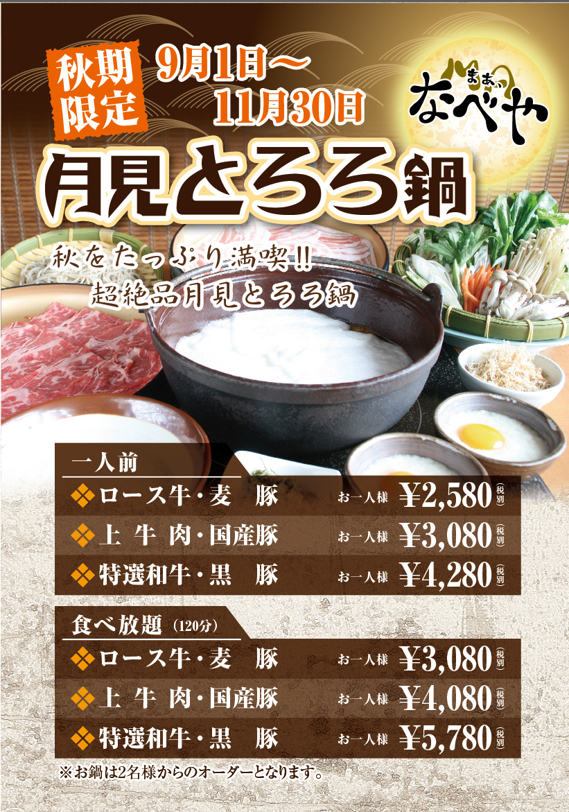 〇期間:9月1日(日)~10月30日(水)17:00~24:00(ディナータイム)