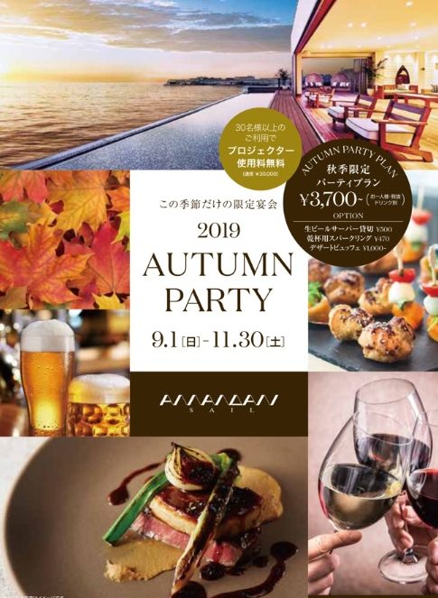 〇期間:9月1日(日)~10月30日(水)ディナータイム17:00~24:00