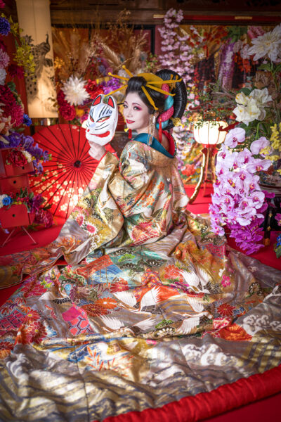 花魁と一緒に無料でスマホ写真が撮れるイベントを開催します。優雅で華麗な花魁と写真が撮れるこの機会をお見逃しなく!