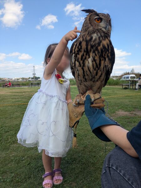 カッコかわいい鷹やふくろうとのふれあいができます!最年少体験者は2歳のお子様♪
