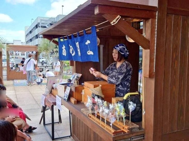 あめ細工の実演販売です。