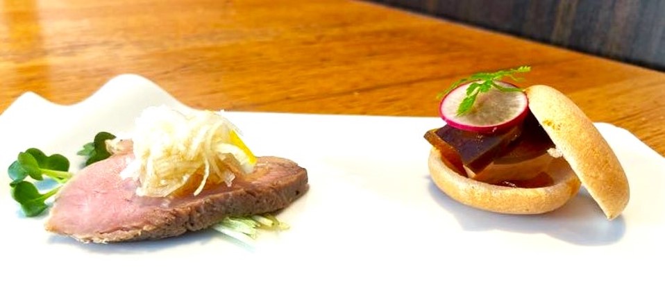 [リンゴ・味噌ピーナッツ等を、千葉県産日本酒を使って仕上げたアシェット]