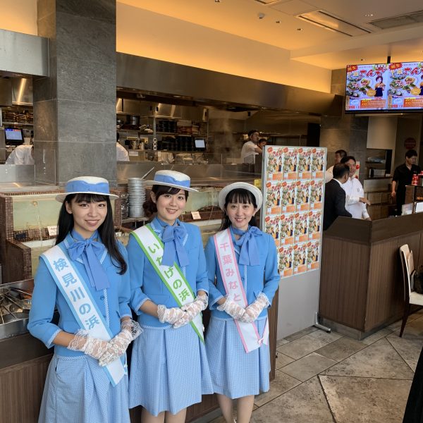 試食会には、千葉市シティ5BEACH観光PR大使の、鈴木海那(みいな)さん(検見川の浜)、岩村雪香さん(いなげの浜)、松本ちはやさん(千葉みなと)も来ていました。