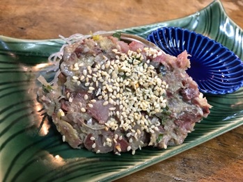 「金角」の「季節のなめろう」。鮮度が命、ということで、まさに海に囲まれた千葉ならでは。