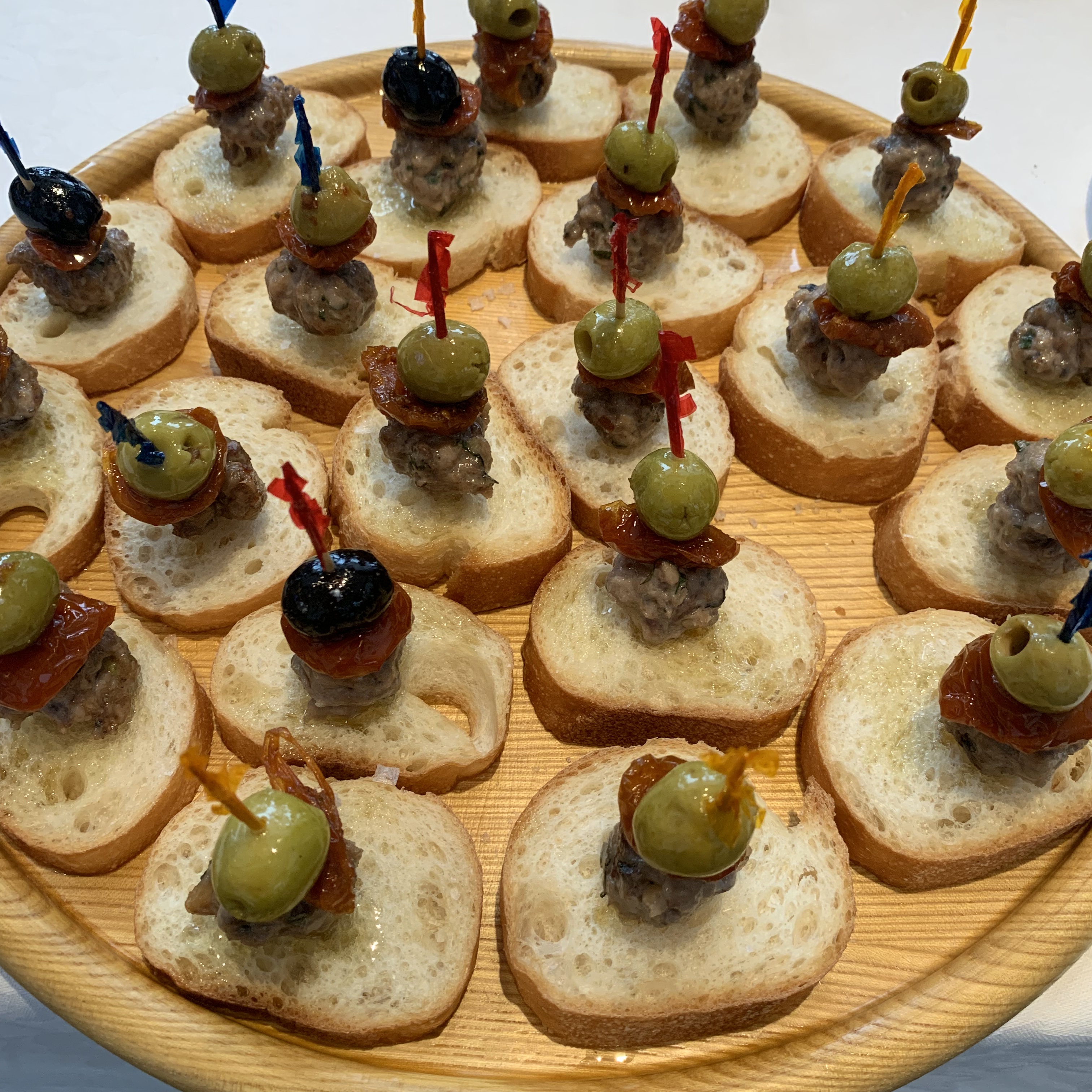 試食会では、ピンチョスにしてサーブされました。おしゃれですね。