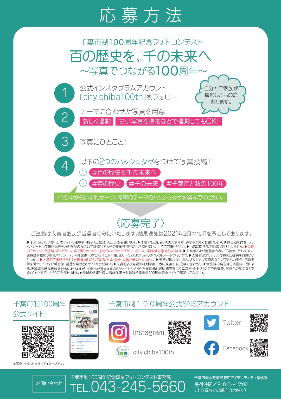 この他、結果通知と入賞・当選の確定、著作権などについて公式サイト「千葉市制100周年記念サイト」をご確認ください。
