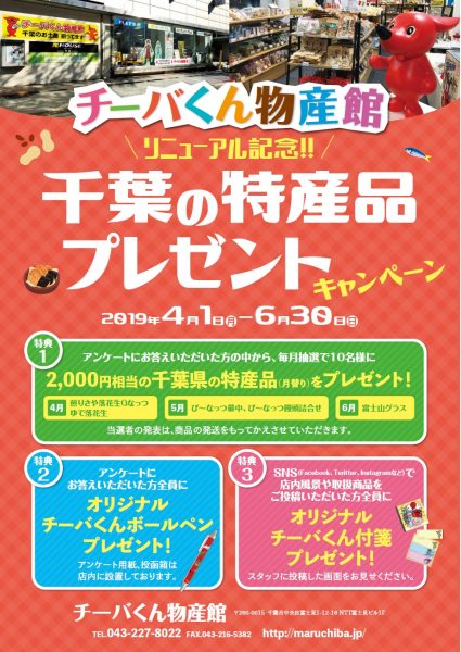 チーバくん物産館リニューアル記念!千葉の特産品プレゼントキャンペーン実施中