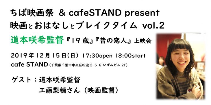 ちば映画祭の新企画として、カフェを会場に、映画をより身近に、作品をもっと気軽にかつもっと深く楽しんでいただきたく、一人の監督にスポットをあて短編映画メインの上映と少し長めのトークを行う、映画とお話とブレイクタイム。
