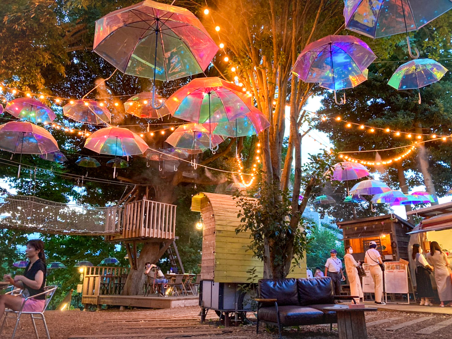 空を彩る、3 つの傘の森。