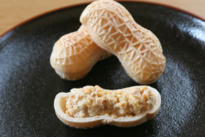 千葉県産半立種の最高品質「落花生」にホワイトチョコをあわせ、落花生型の最中の皮で包みました。飽きのこない落花生の塩味と軽い食感が美味しさの秘訣です。千葉のお土産としても大変ご好評いただいているお菓子です。