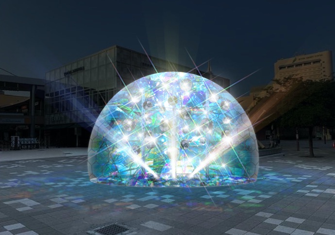 △南口には高さ約4m、直径約6mのドームの中に、幻想的にまたたく青を基調としたイルミネーションと、アクセントとなるビームライトを配置した、ブリリアンドームを設置 ※写真はイメージです。