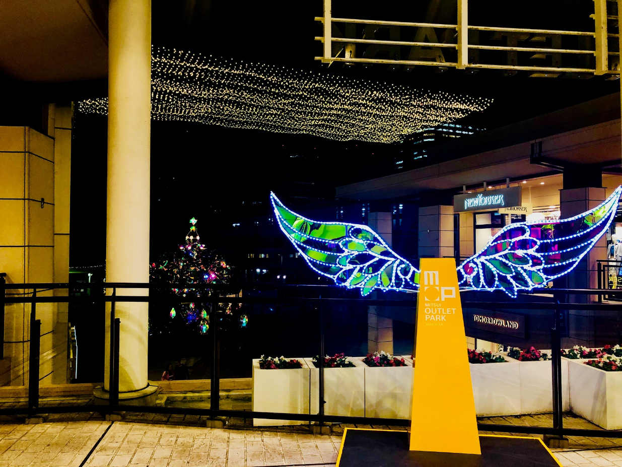 △翼のフォトスポットと夜空のイルミネーションが幕張の夜を彩ります。