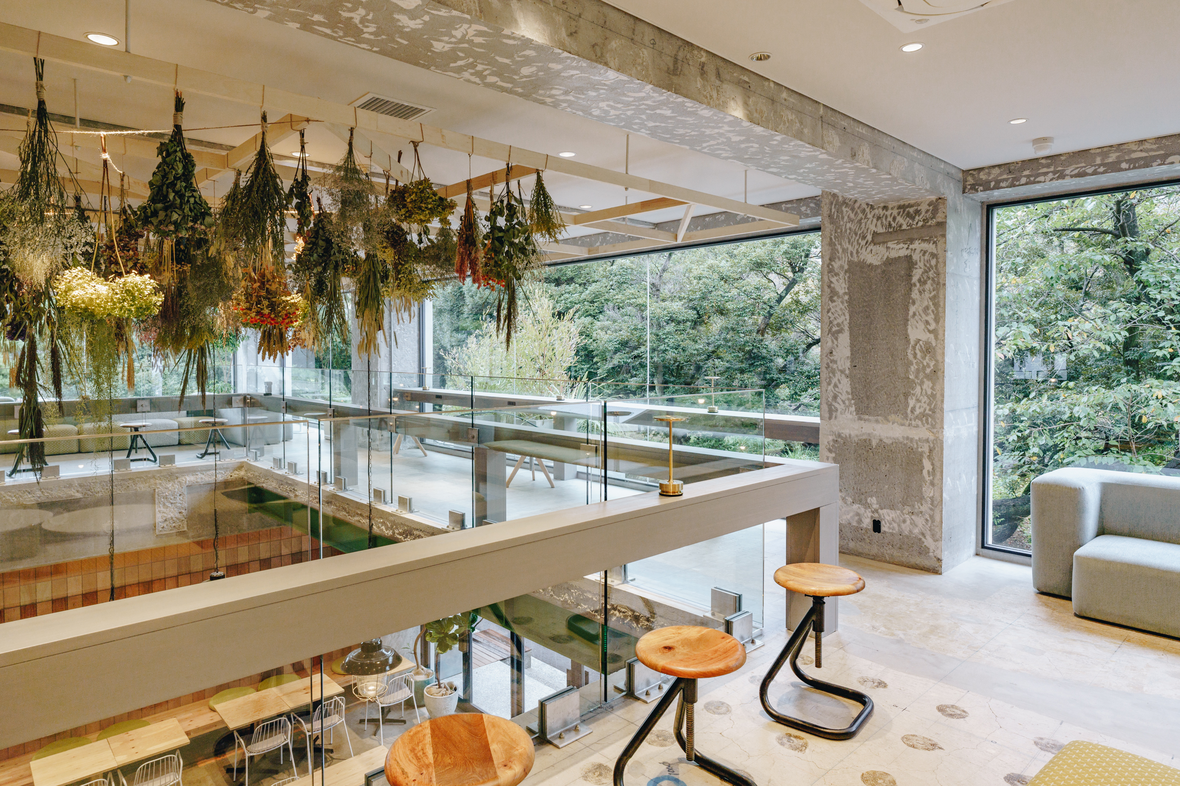 建築、各店舗ごとの内装・家具、サイン、屋上や2階テラスを含むランドスケープデザイン、カラーコーディネート、各フロアごとに多様性はありながらも、全てにトーン&マナーを統一、同一チームにてデザイン