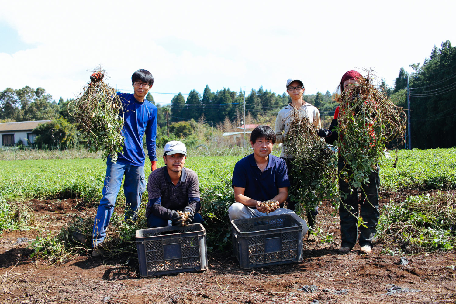 「大塚秀農園」の収穫体験では、参加者は畑の端に陣取って、気の済むまで落花生の収穫を楽しみます。