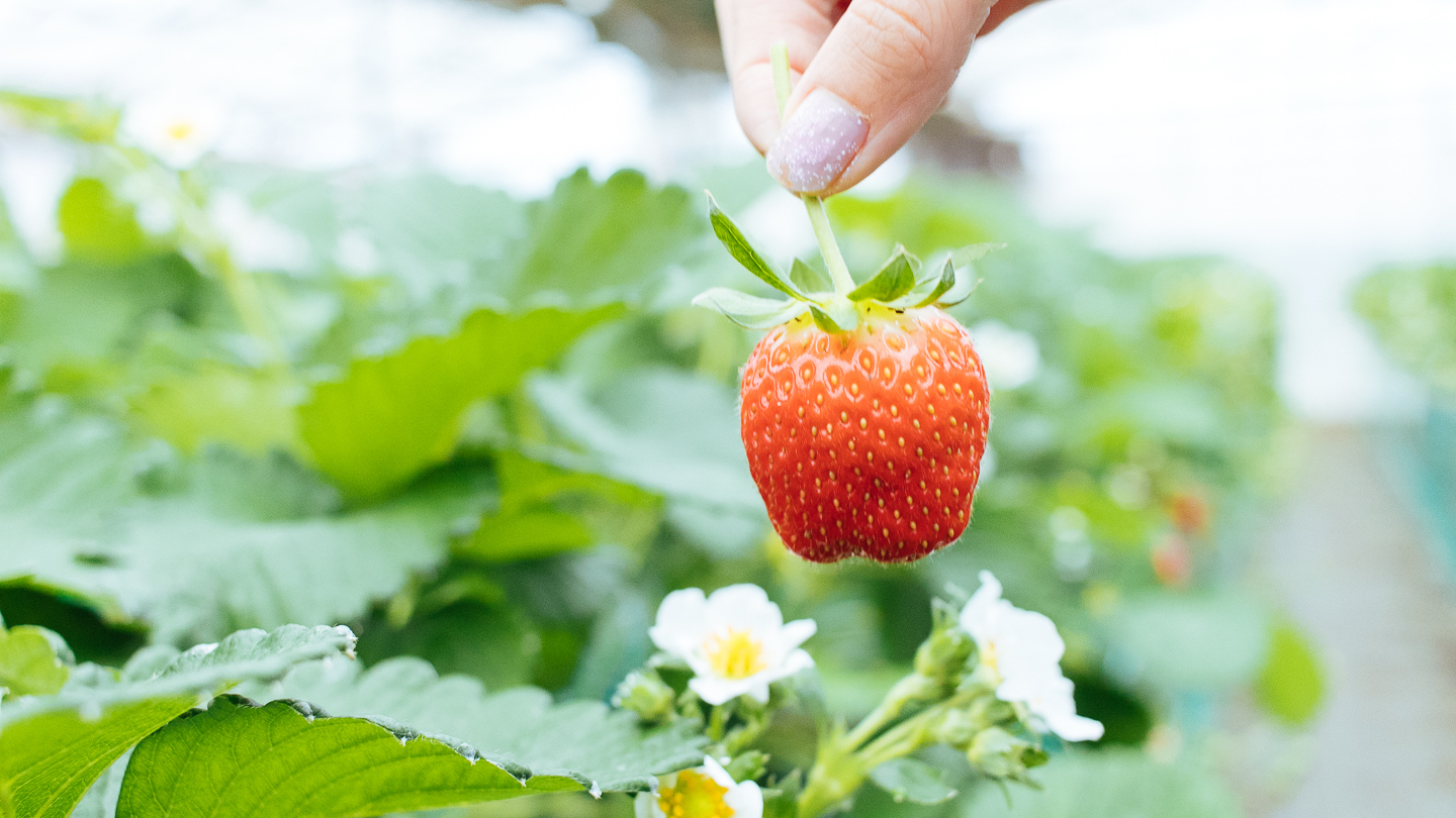 好みのいちごを見つけたら、いざ摘み取り体験!