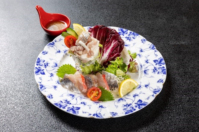 千葉県産醤油とネギを使用した和風仕立てのカルパッチョ。