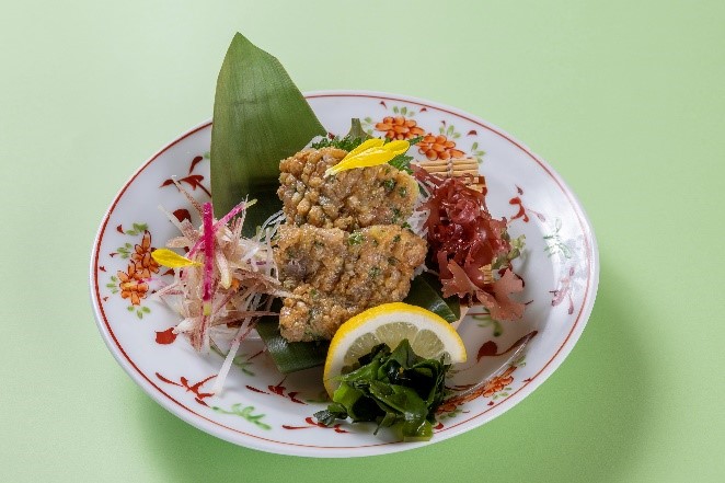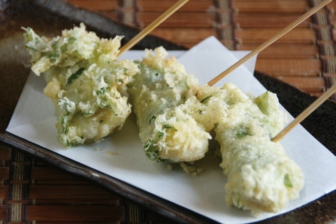 千葉県産鯵のたたきを天ぷらで仕上げました。