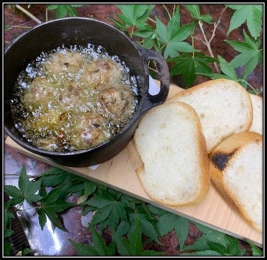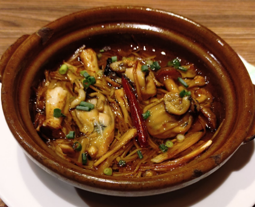 牡蠣とキノコの入ったアヒージョを千葉県産の醤油で仕上げました
