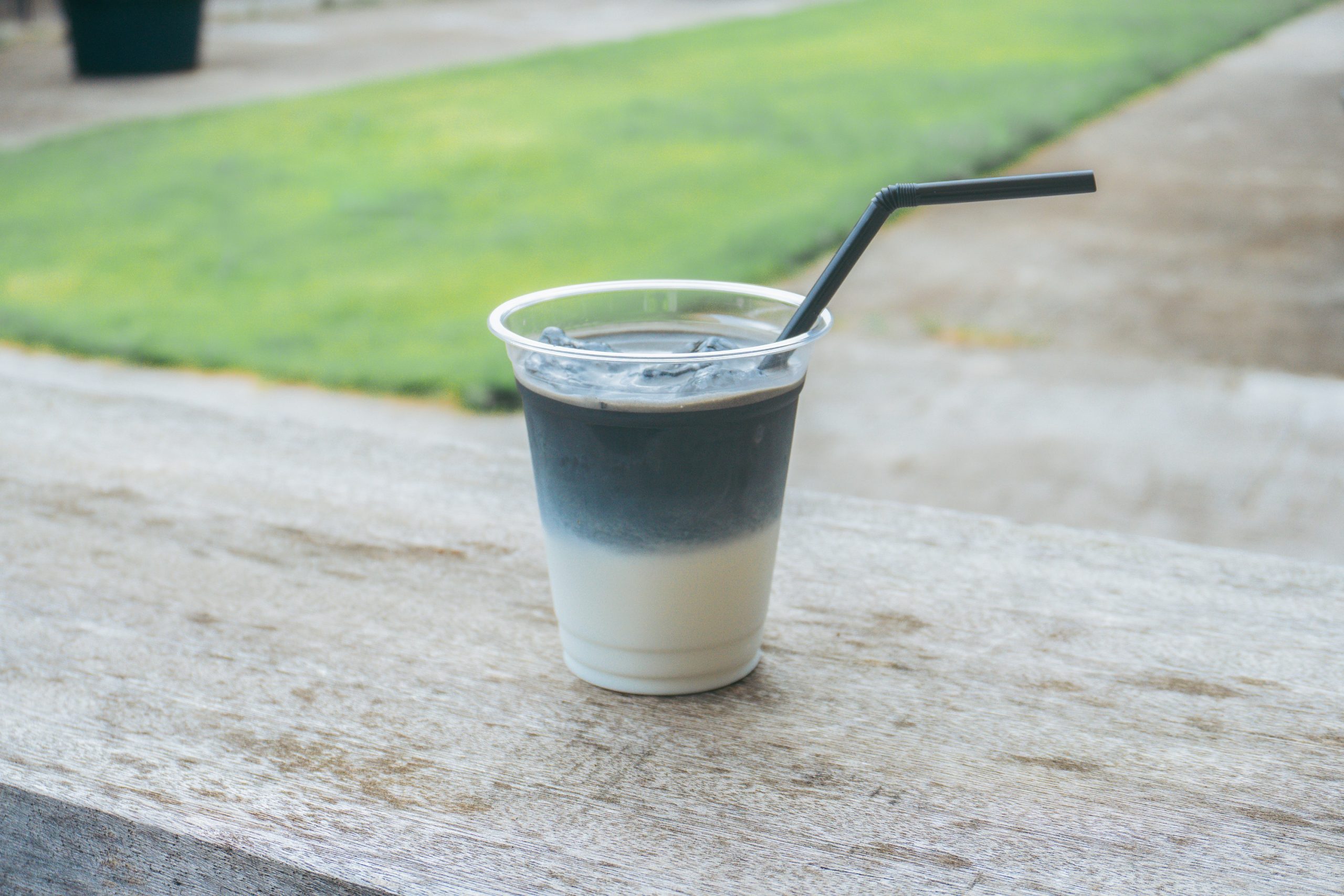 千葉県産の牛乳と竹炭入りのコーヒーを合わせたシンプルながら、濃厚なミルクコーヒーです。-