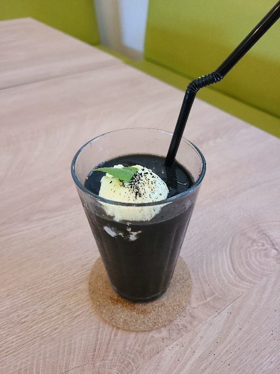 ●チャコールコーヒーフロート(¥700)こだわりのアイスコーヒーと竹炭パウダーをコラボしバニラアイスを乗せました。ちば都心エリアや近隣市でも