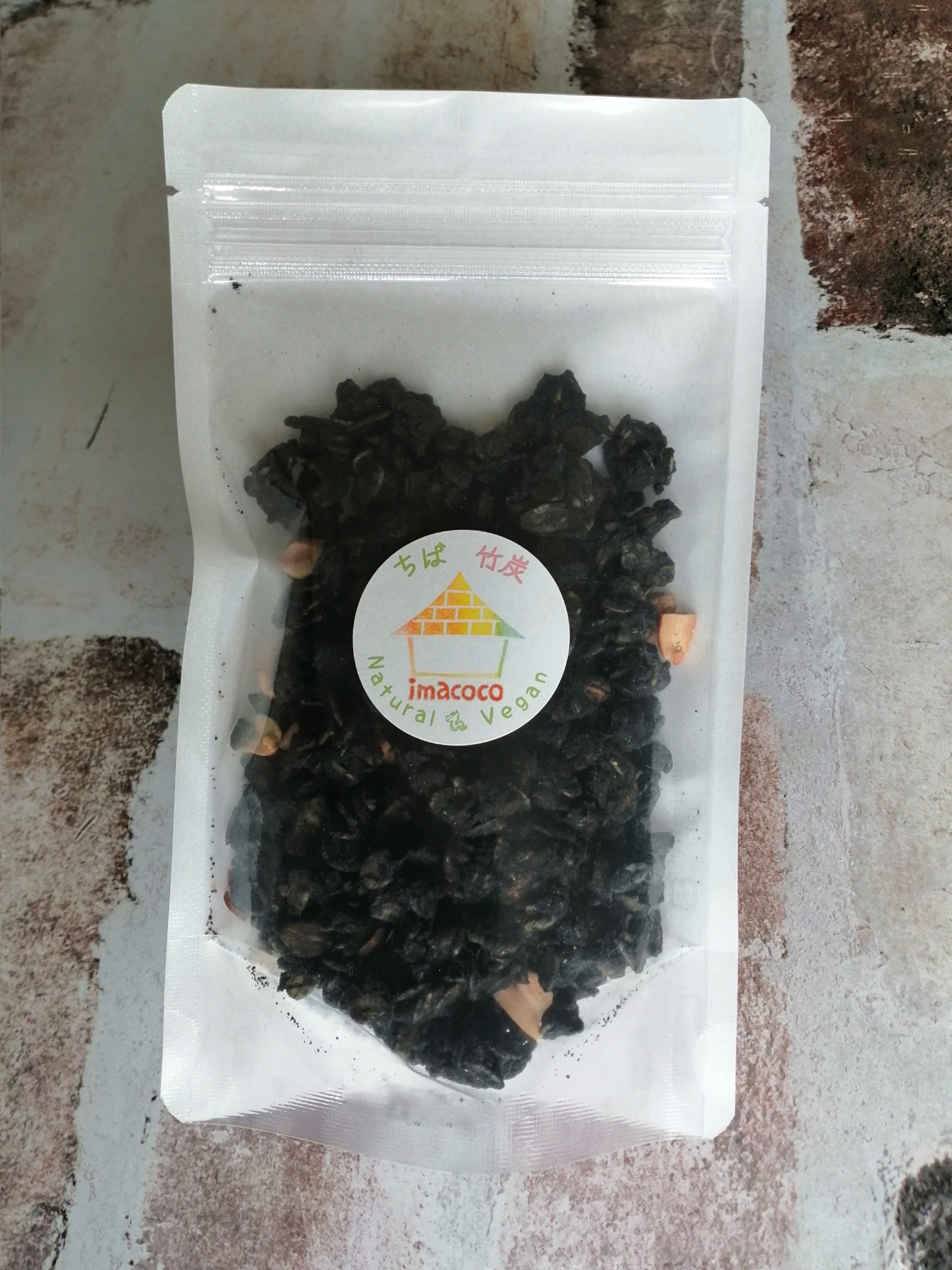●ちば竹炭グラノーラ(中サイズ100g 880円)千葉県産のオーガニック落花生、玄米粉、そして竹炭。