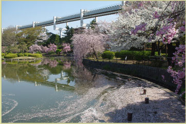- ▲花見川と桜と隣接する公園