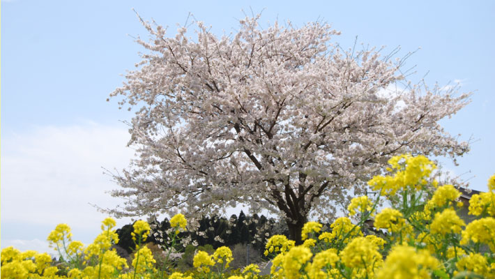 - ▲菜の花と桜のコラボレーション