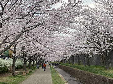 花見川沿いに立ち並ぶ美しい桜並木