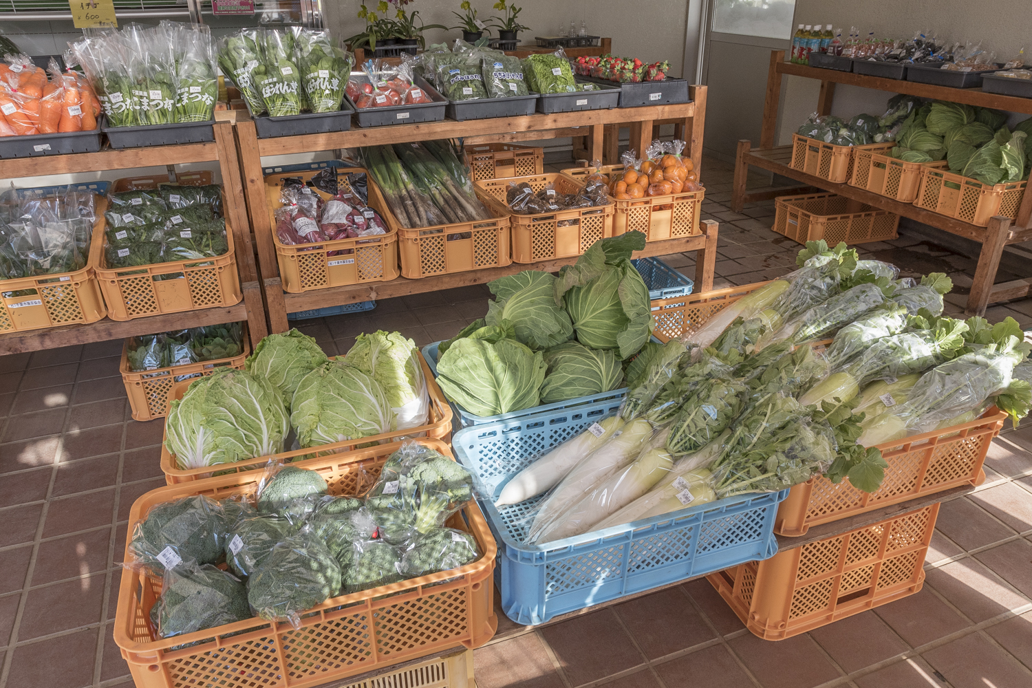 地元農家が育てた新鮮な野菜・果実・花木はもちろんのこと、「千葉市農政センター産」の採れたて野菜や花も販売しています。