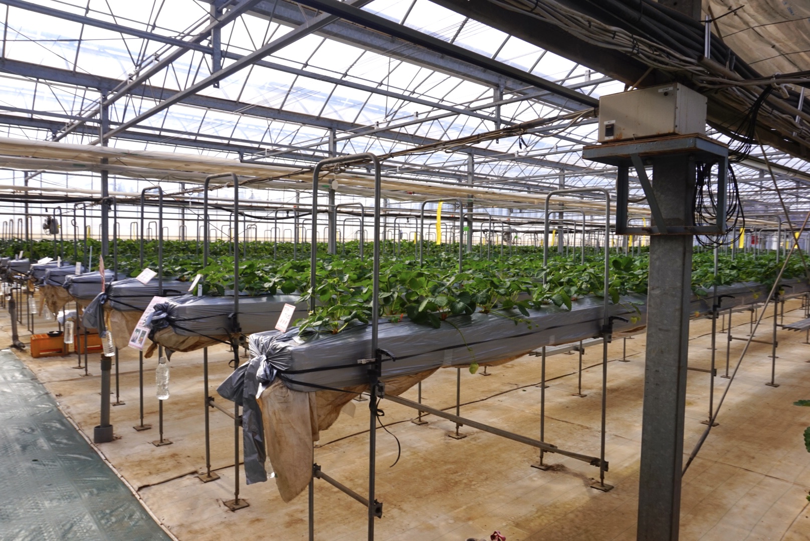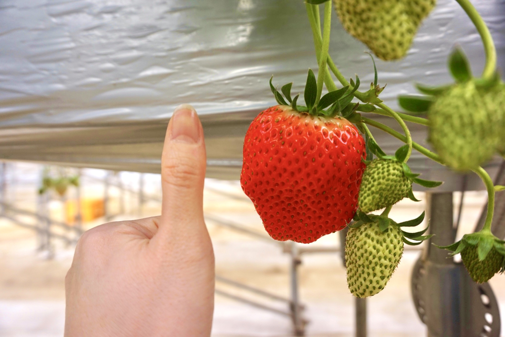 高設栽培なので子どもや高齢者の方もラクラク摘み取りができます。バリアフリートイレあり。イチゴの直売もしています。