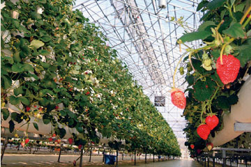 ▲園内は広々とした高設栽培なので、子どもから車いすのお年寄りも安心♪