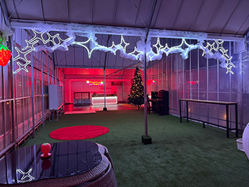 ▲DJが奏でる音楽をバックに、ライトアップされた農園で夜のいちご狩りを楽しむことができます。