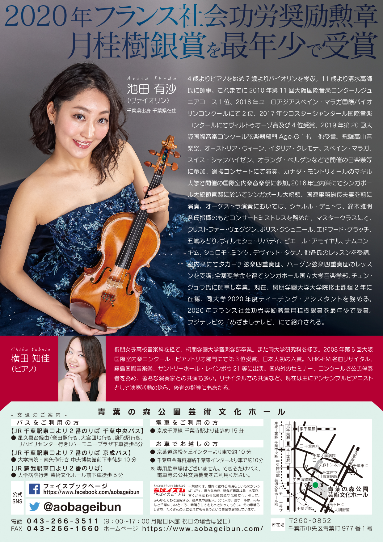 2020年フランス社会功労奨励勲章月桂樹銀賞を最年少で受賞した、千葉県出身千葉県在住のヴァイオリニスト「池田有沙」をご紹介する受賞記念コンサート! ※当日先着