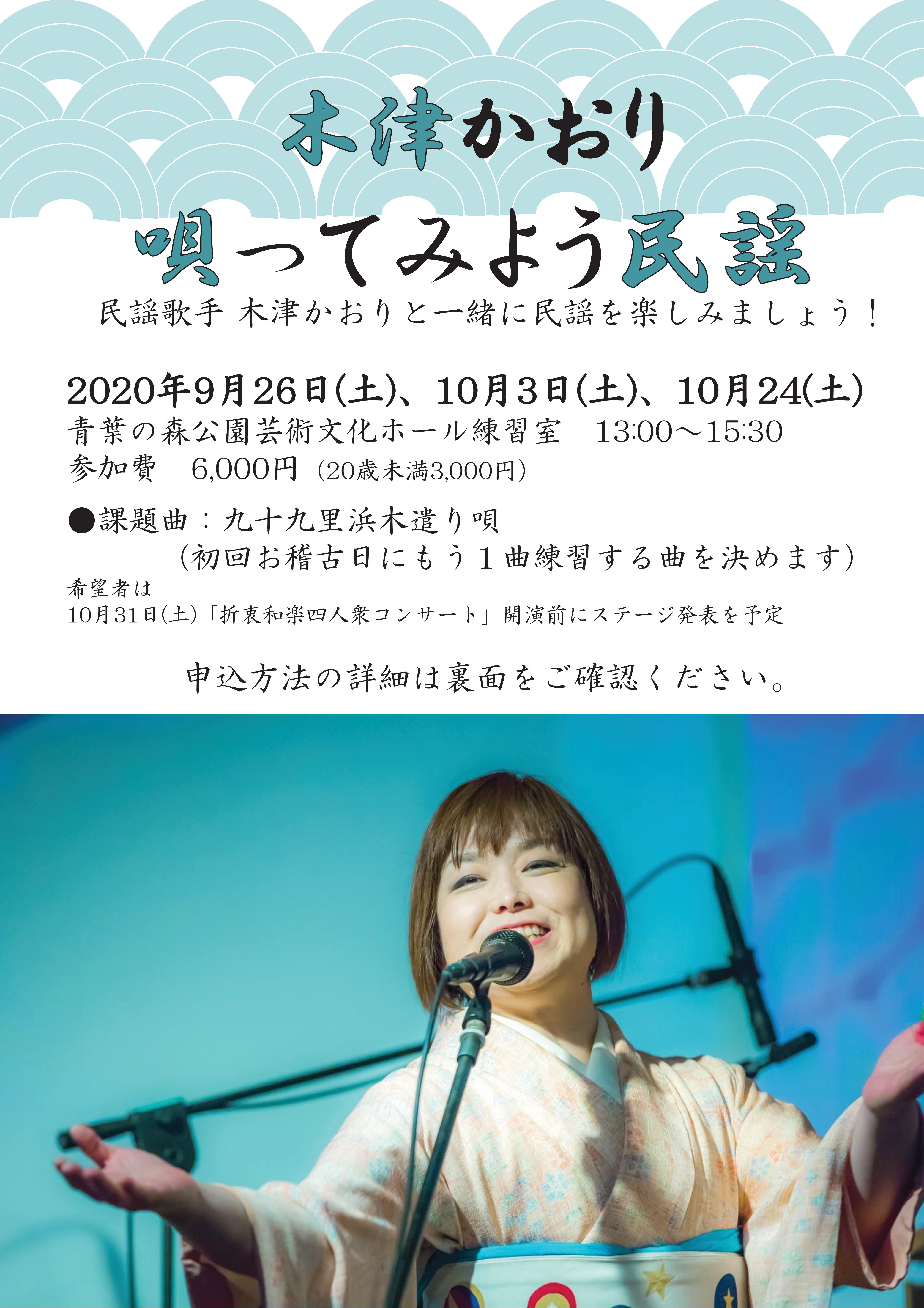 木津かおり 唄ってみよう民謡@青葉の森公園芸術文化ホール<9/26(土曜)・10/3(土曜)・10/24(土曜)>