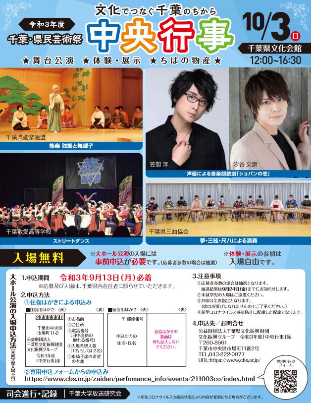 令和3年度千葉・県民芸術祭~文化でつなぐ千葉のちから~@千葉県文化会館<10/3(日曜)>