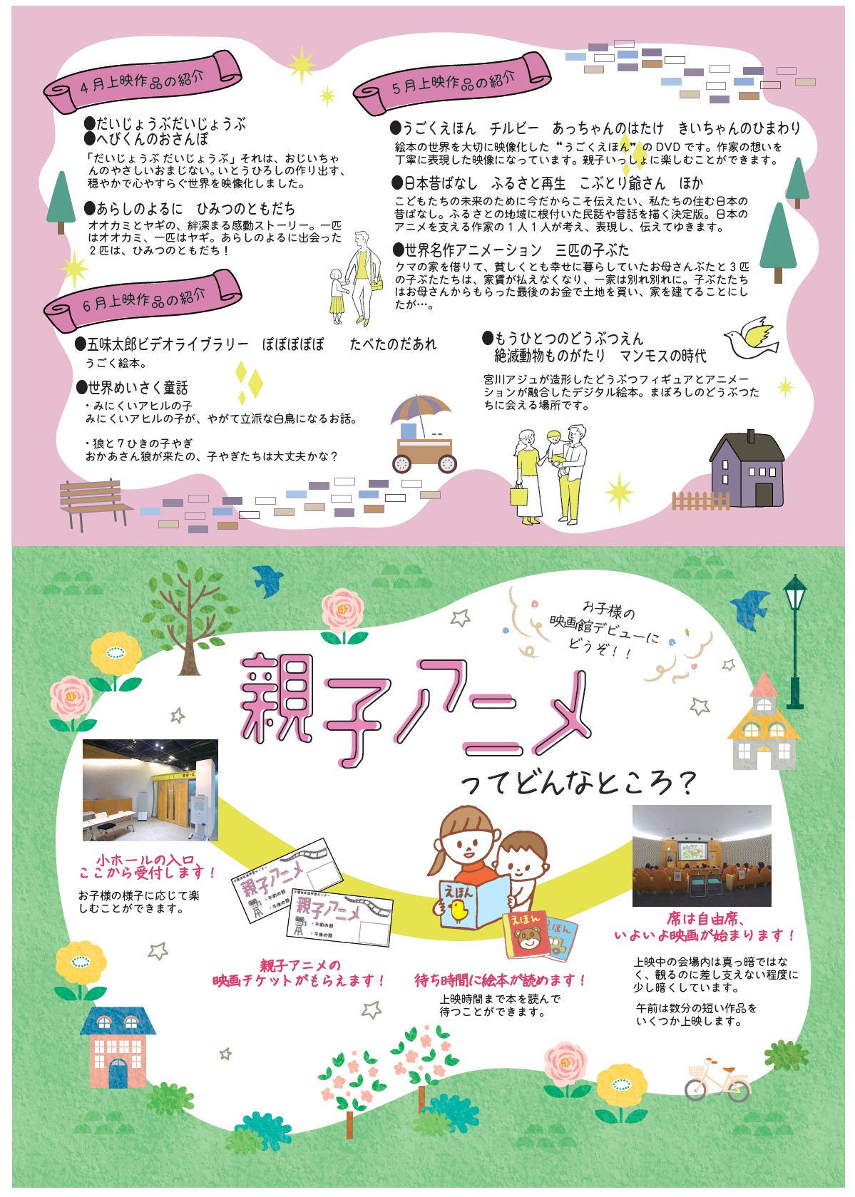 毎月1回土曜日に、1時間程度の子ども向作品の上映会をしています。懐かしいアニメ作品もあります。
