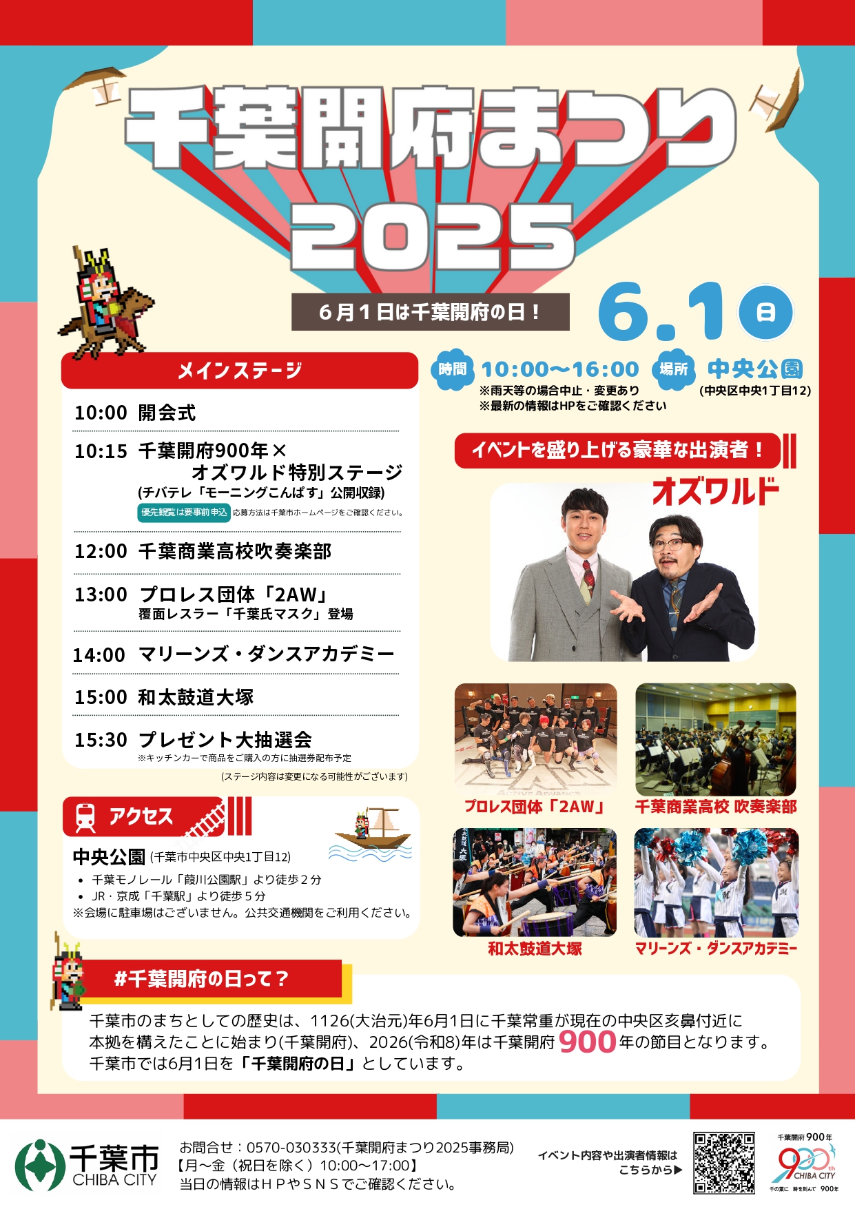千葉開府900年を皆でお祝いし、楽しみながら千葉市のまちの歴史を学び、未来について考える「千葉開府まつり2025」を開催します。