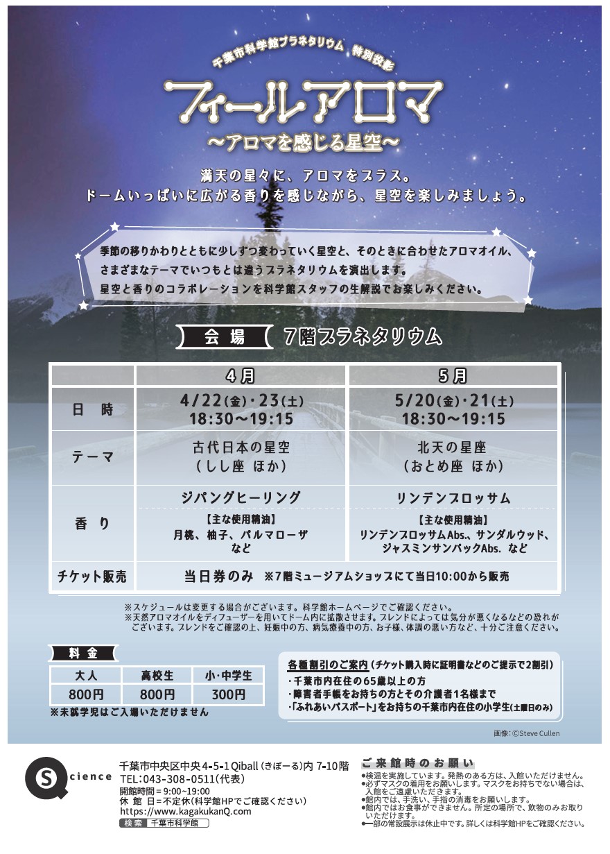 特別投影「フィールアロマ ~アロマを感じる星空~」@千葉市科学館< 4/22(金曜)・23(土曜)>