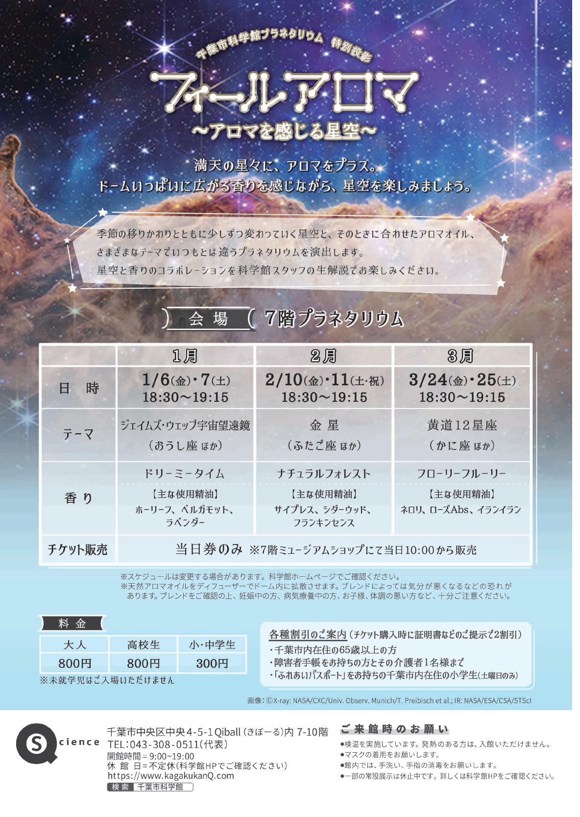 特別投影フィールアロマ ~アロマを感じる星空~@千葉市科学館< 2/10(金曜)・11(土曜・祝日)・3/24(金曜)・25(土曜)>