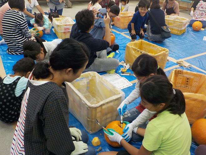 【持ち物】エプロン、カッター、カボチャくり貫き用のおたま等