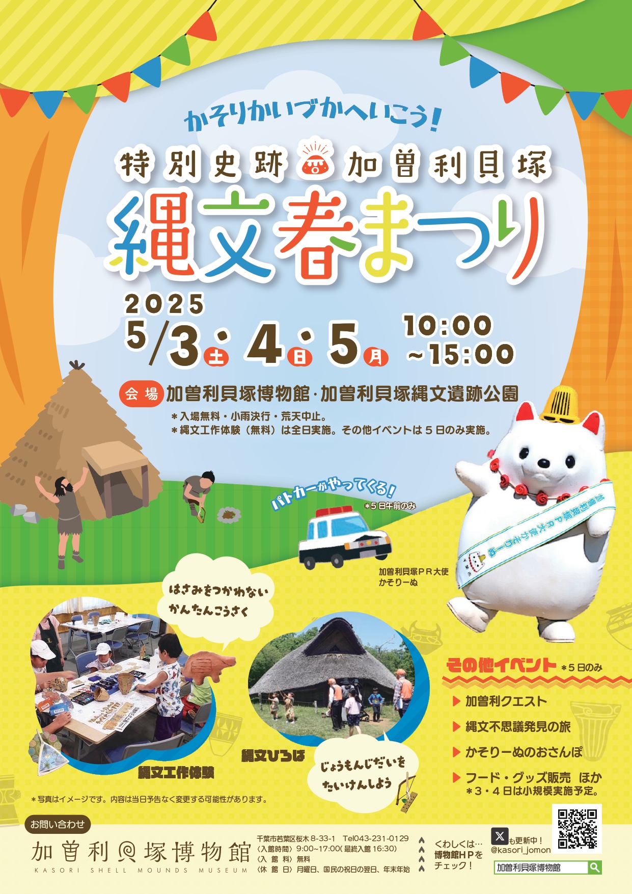5日(月)には、加曽利貝塚PR大使かそりーぬと記念撮影もできます。
