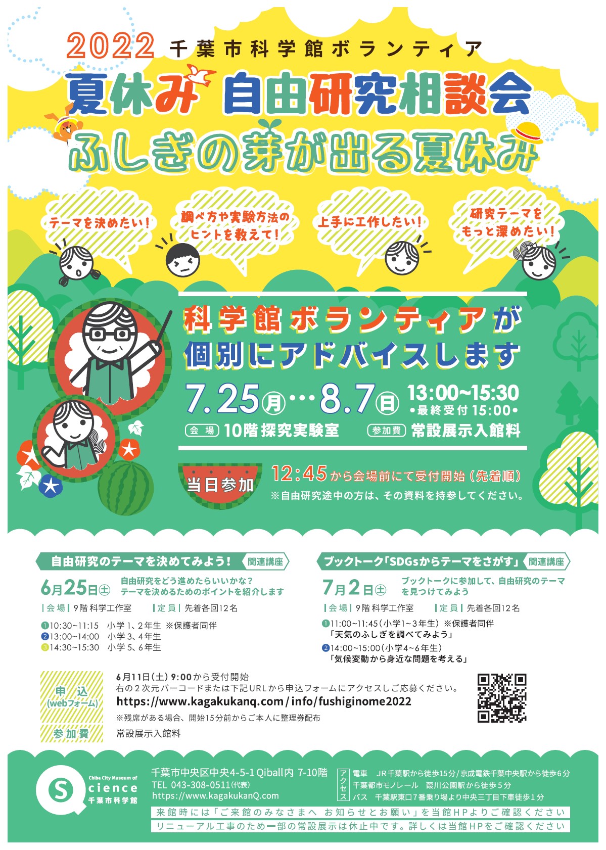 夏休み自由研究相談会「ふしぎの芽が出る夏休み」@千葉市科学館<7/25(月曜)~8/7(日曜)>