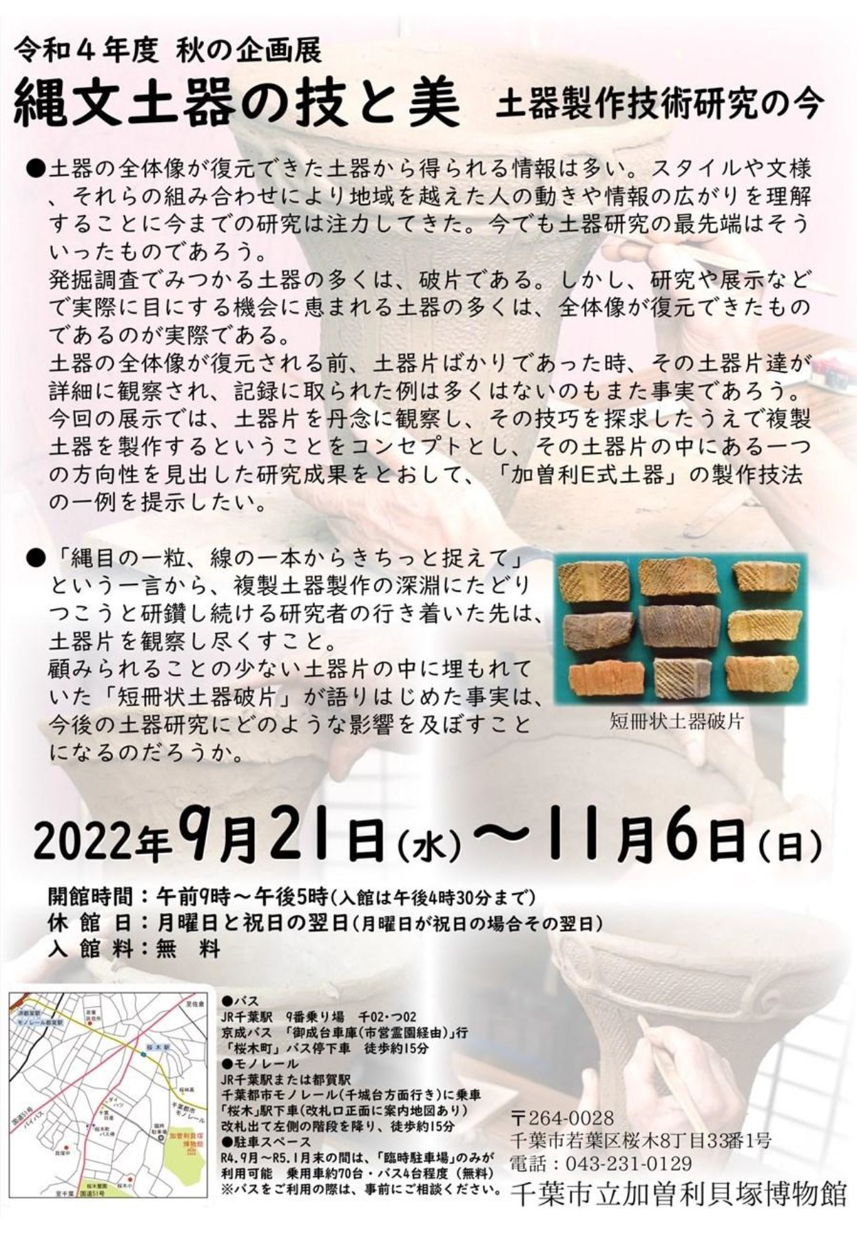 秋の企画展「縄文土器の技と美」@千葉市立加曽利貝塚博物館<9/21(水曜)~11/6(日曜)>