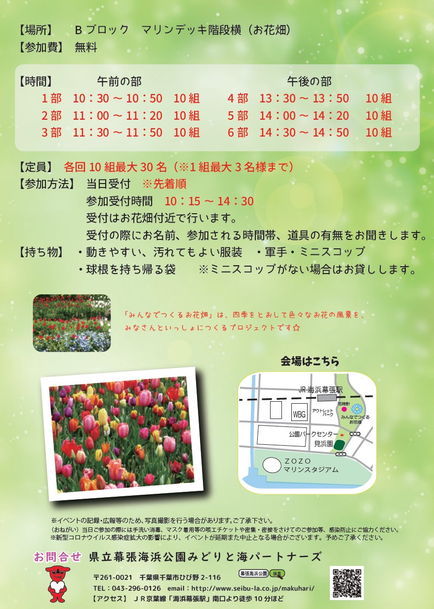 | 開催場所 | 幕張海浜公園Bブロック みんなでつくるお花畑 (マリンデッキ階段横) |