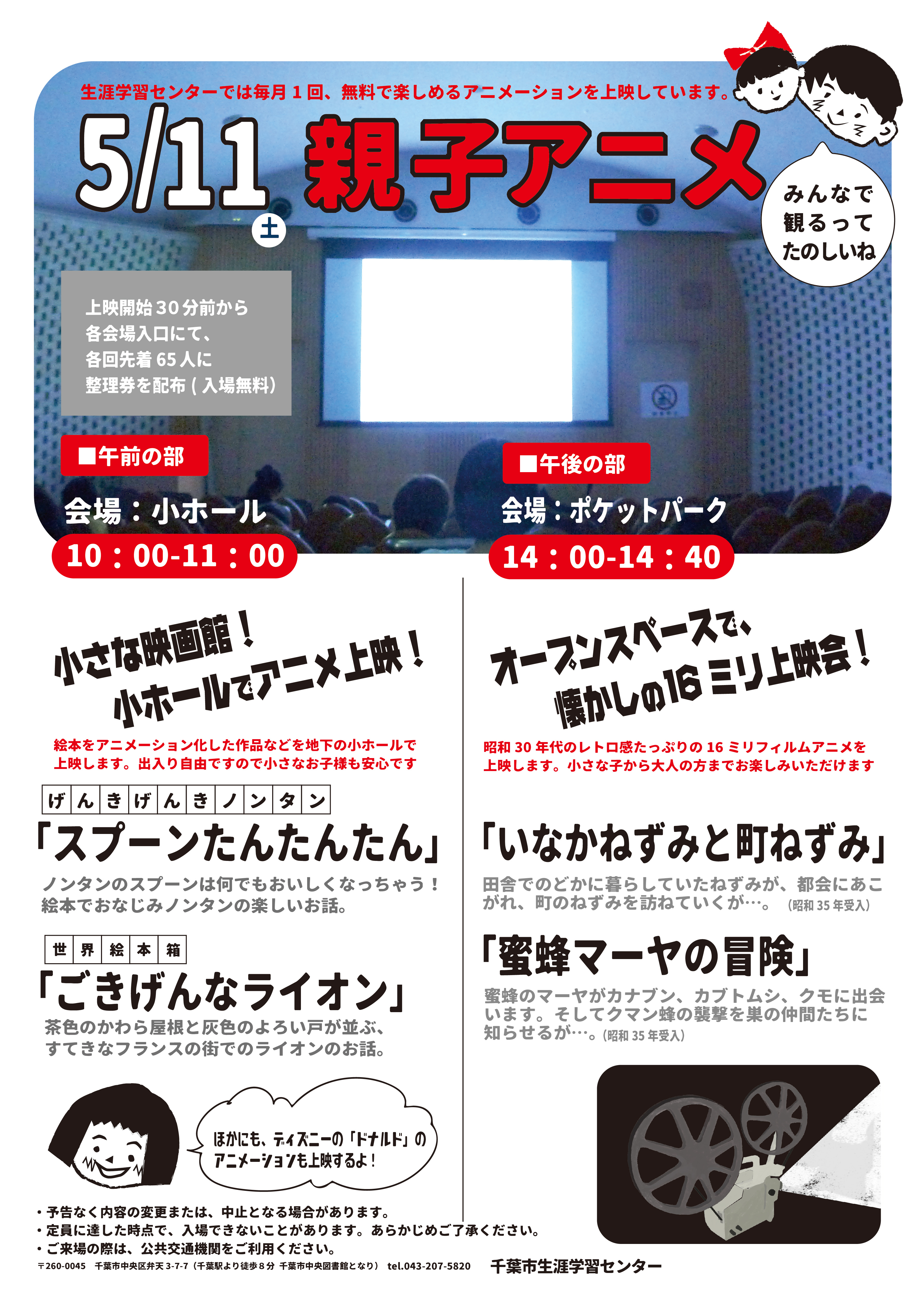 親子アニメ@千葉市生涯学習センター<5/11(土)>
